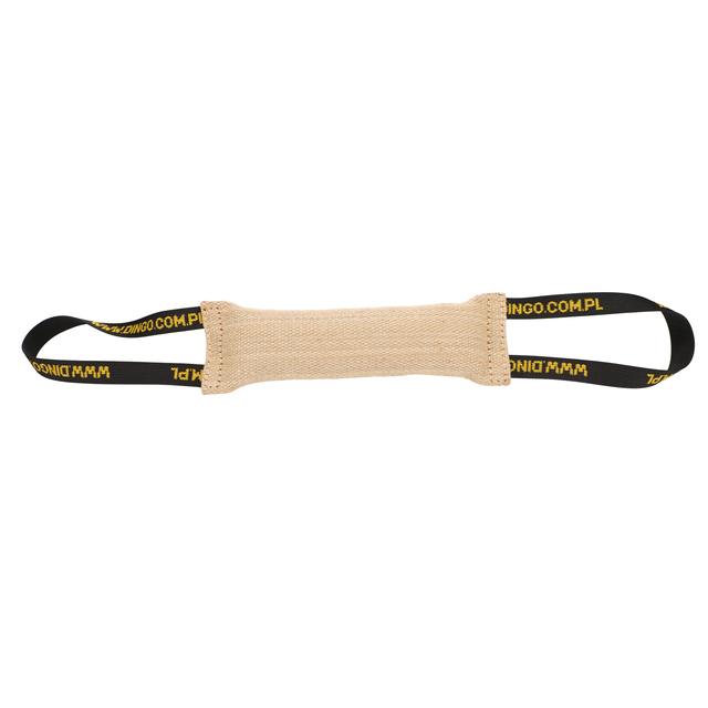 Dingo käepidemega džuudist patukas on valmistatud vastupidavast materjalist. Patuka sees olev piiksutaja stimuleerib koera meeli veelgi. Džuut võimaldab teie koeral mänguasja sisse hammustada, ilma et see kahjustaks kiude. See vastupidav koeramänguasja sobib ideaalselt nii koeraga mängimiseks kui ka professionaalseks treeninguks, kus koer õpib kuulekust ja hammustamise õppimist.