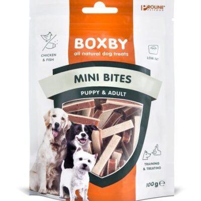 Tootetutvustus Boxby Puppy Snacks Mini Bites täiendsööt koertele. Maius on madala kalorisisaldusga ning sobib hästi treenimiseks. Päevaseks tarbimiseks soovitatav kogus