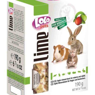 LoLo Pets Lime mineraalkivi närilistele. Aitab hoida hambad tervetena. Sisaldab naturaalseid vitamiine tugeva tervise jaoks. Koostis Kaltsiumkarbonaat, kuivatatud õun 4%.