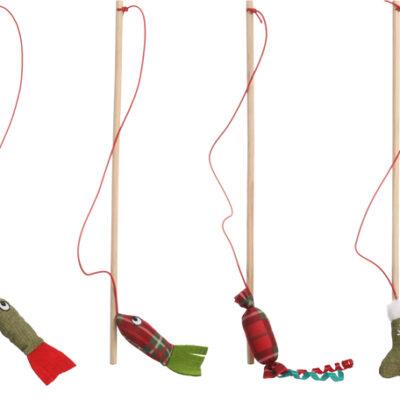 Flamingo kassi puidus õng. Õnge küljes on kangast mänguasi ning mänguasi sisaldab naistenõgest. Stimuleerib kassi jahinstinkti. E-poes valik juhuslik. Mõõdud: