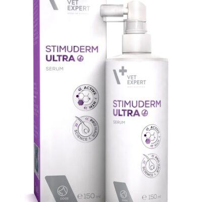 Tootetutvustus, otstarve Vetexpert Stimuderm Ultra seerum. Innovatiivne veterinaarne dermokosmeetiline toode, mis on mõeldud koertele, kellel esineb erinevatel põhjustel liigset karvkadu