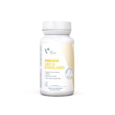 Tootetutvustus VetExpert Uro&Sterilised kapslid kassidele ja koertele. Täiendsööt kasside ja koerte kuseteede optimaalse toimimise toetamiseks. Päevaseks tarbimiseks soovitatav kogus ning